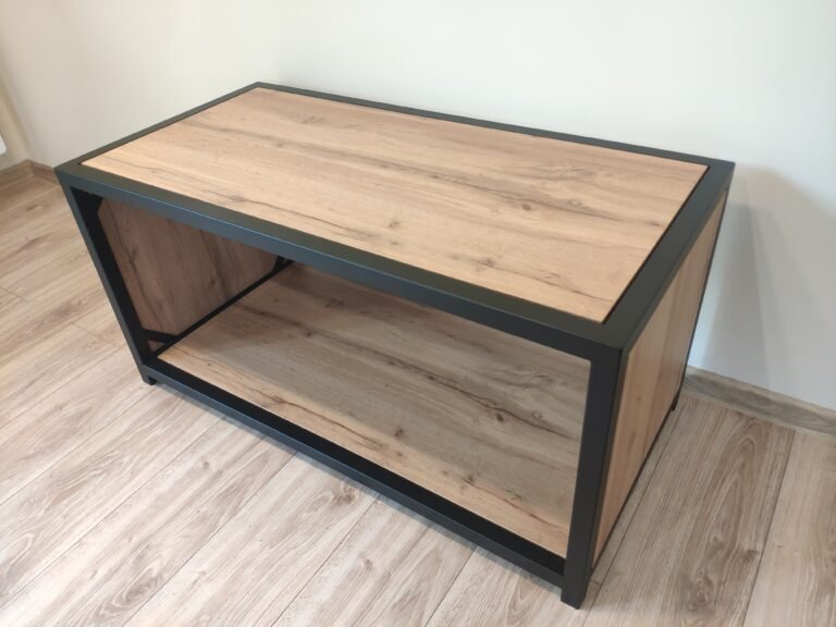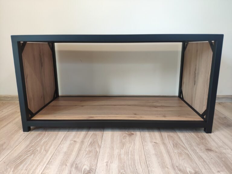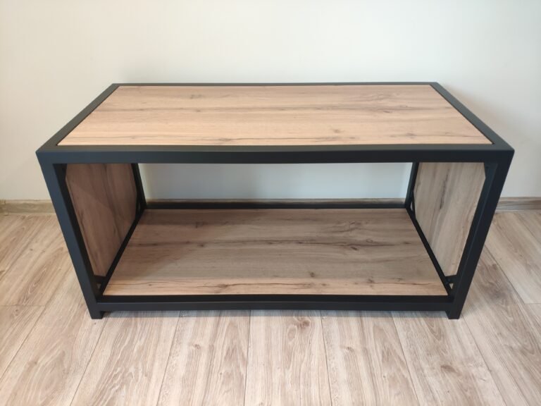 Stylowa ława w industrialnym wydaniu to idealne uzupełnienie nowoczesnego salonu. Solidny stalowy stelaż w matowej czerni zapewnia stabilność, a blat z płyty laminowanej w kolorze dąb wotan wprowadza ciepło i naturalność. Świetnie sprawdzi się jako stolik kawowy lub niska ława pomocnicza. Minimalistyczna forma podkreśli charakter wnętrza w stylu loftowym, nowoczesnym lub skandynawskim.